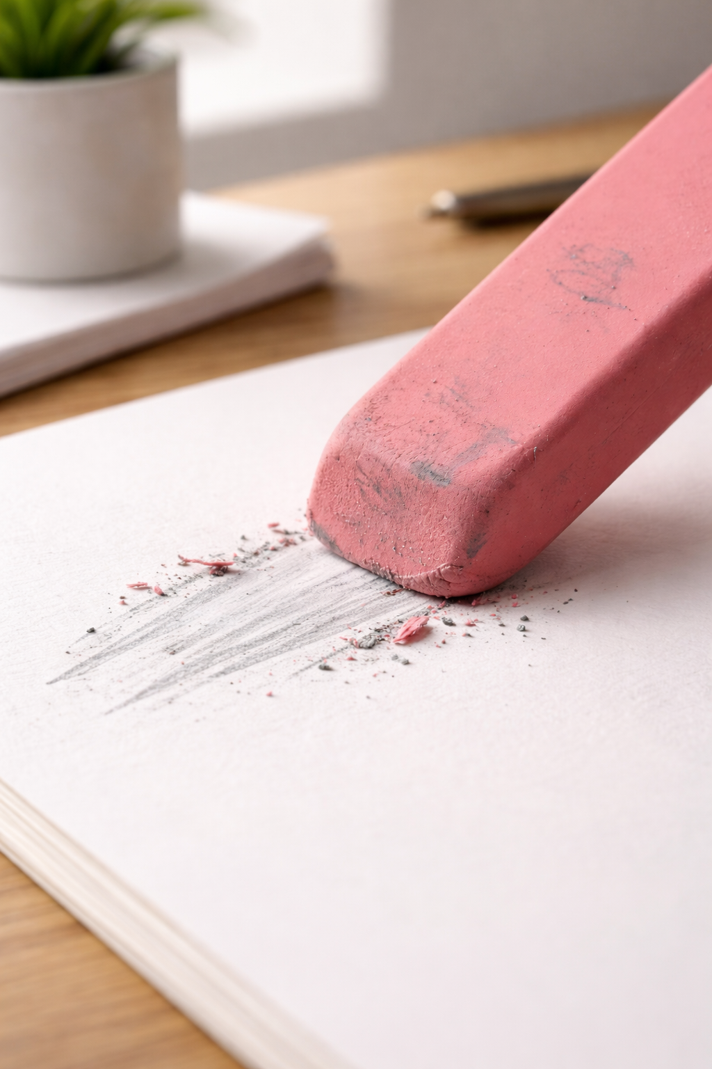 Die Schrift lässt sich sauber mit einem herkömmlichen Radiergummi entfernen ohne sichtbare Rückstände.